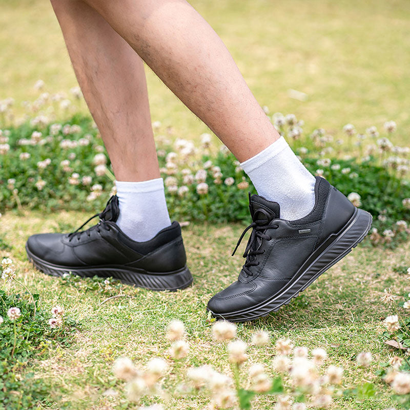 Engineered for the modern man who values both style and performance, the ECCO Exostride Men's Sneakers blend premium craftsmanship with practical functionality. Made with a durable black leather upper, these Sneakers offer a sleek yet rugged look that suits any casual or outdoor setting.