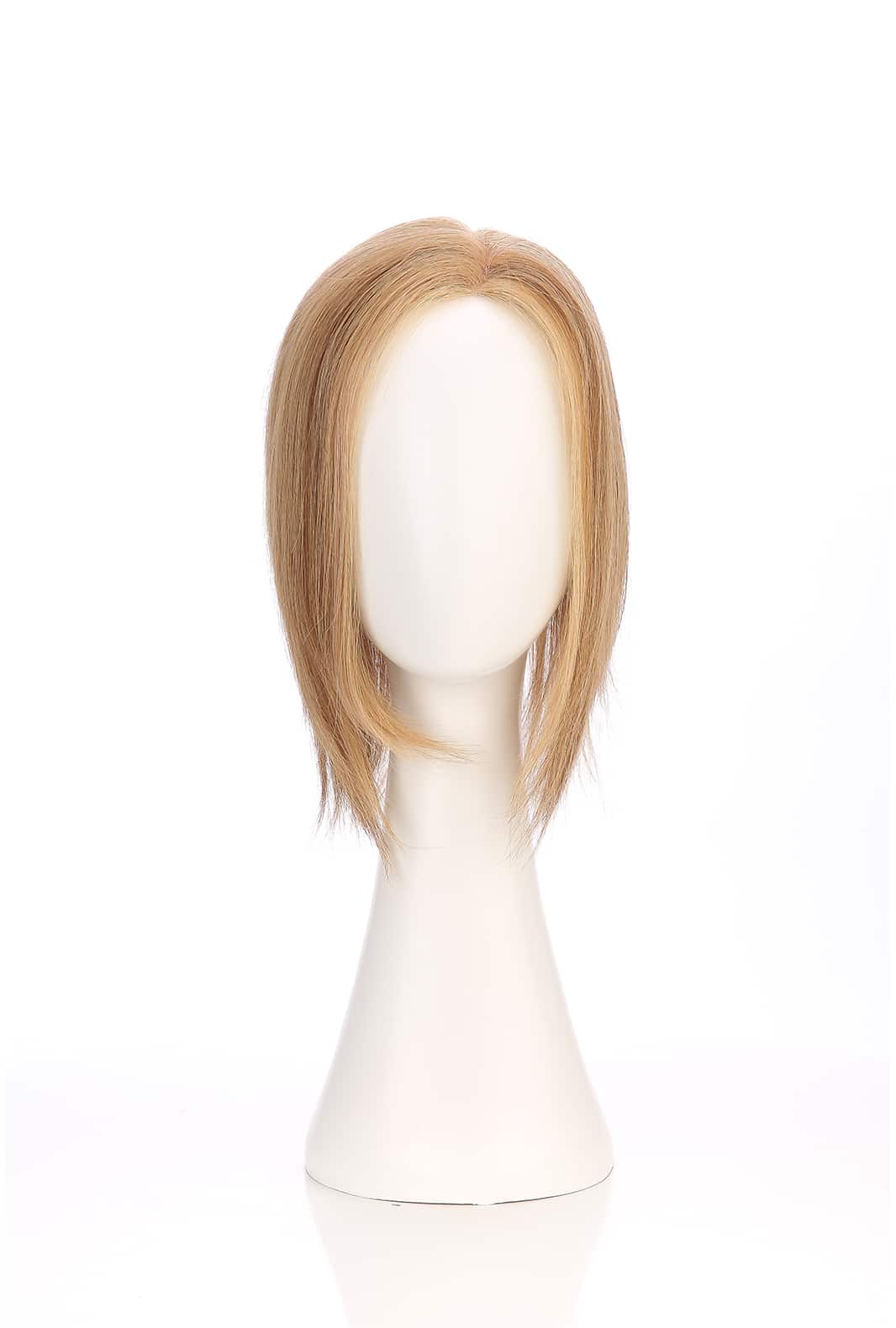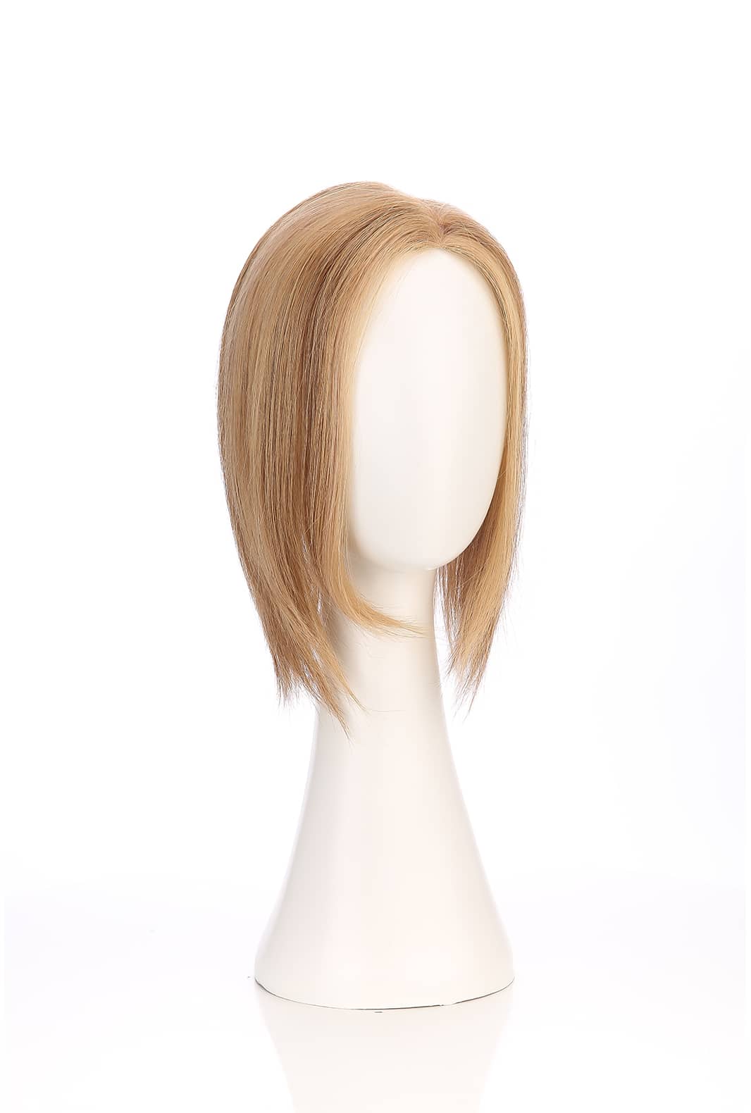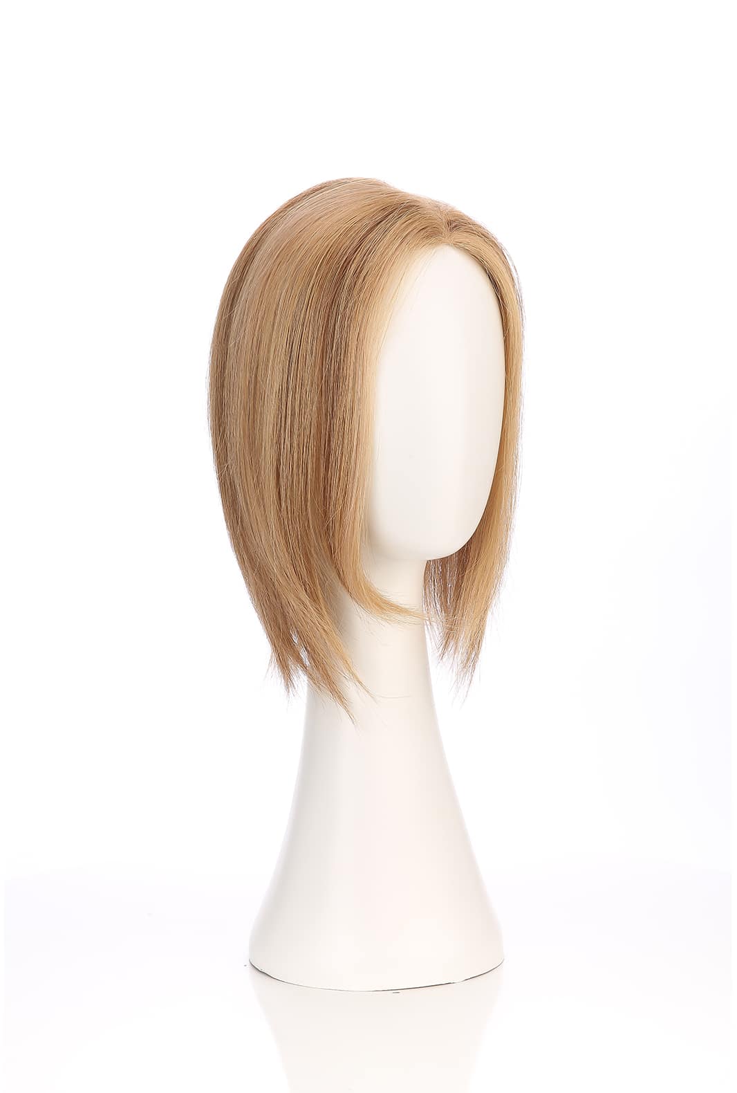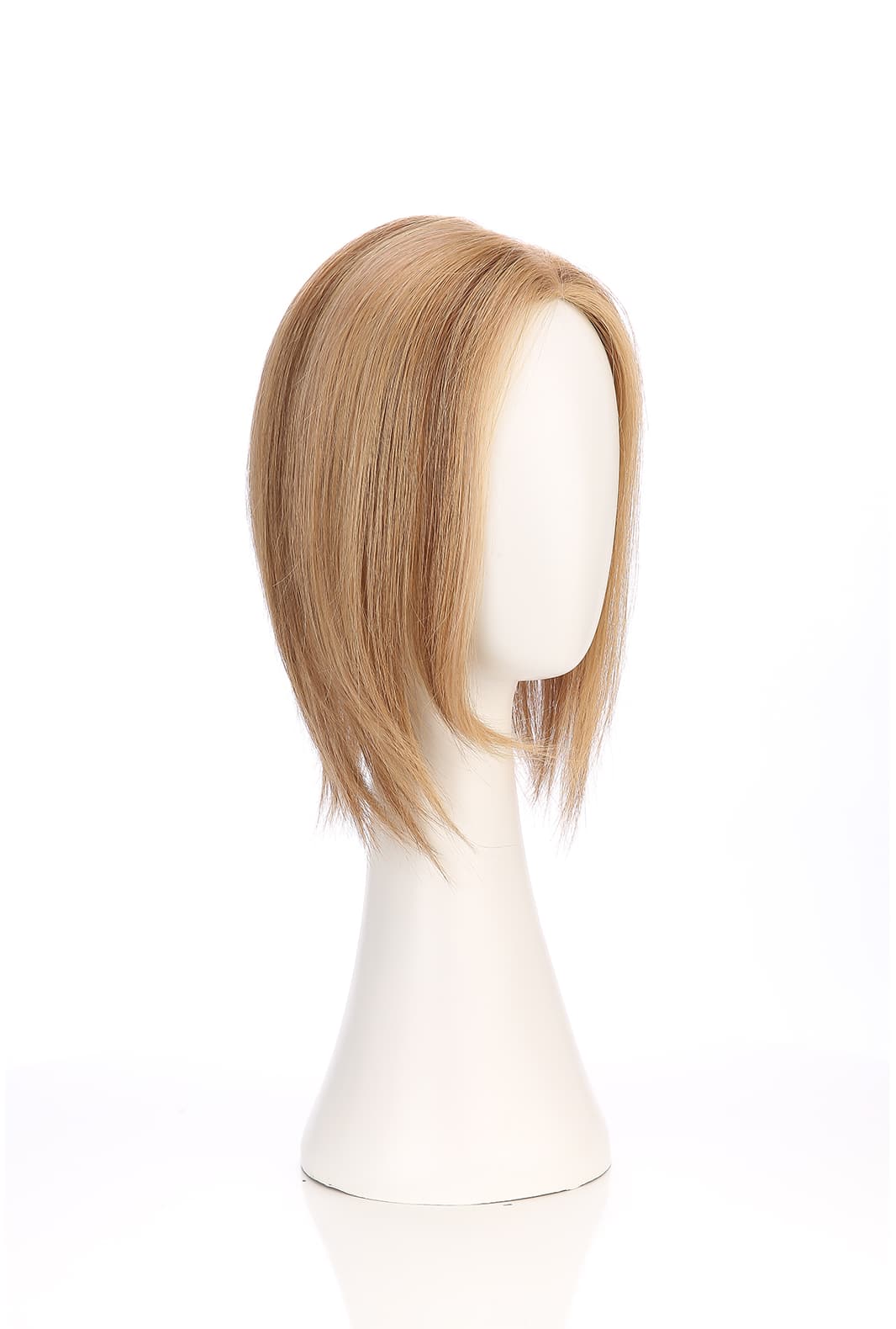 The Elva by ECCO Hair is a 10-inch Remy human hair top piece crafted for seamless integration and confidence. Its monofilament base (6.5"x6") offers parting flexibility, natural movement, and breathable wear throughout the day. This topper is ideal for women experiencing hair thinning and seeking a sophisticated, ready-to-style solution.